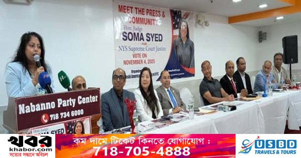 নিউইয়র্ক (ইউএনএ): নিউইয়র্ক সিটি তথা যুক্তরাষ্ট্রের ইতিহাসে প্রথম বাংলাদেশী আমেরিকান ও মুসলিম সোমা সাঈদ কুইন্স কাউন্টির সিভিল কোর্টের জাজ নির্বাচিত হওয়ার পর এবার সিটির সুপ্রীম কোর্ট জাস্টিস পদে প্রতিদ্ব›িদ্বতা করছেন। আগামী ৪ নভেম্বর সিটির মেয়র নির্বাচনের পাশাপাশি জাস্টিস পদেও নির্বাচন অনুষ্ঠিত হবে। এ উপলক্ষ্যে গত ১৮ আগষ্ট সোমবার সন্ধ্যায় জ্যাকসন হাইটসের নবান্ন পার্টি সেন্টারে জাজ সোমা সাঈদের পক্ষ থেকে মিট দ্যা প্রেস এন্ড কমিউনিটি অনুষ্ঠানের আয়োজন করা হয়। খবর ইউএনএ’র।