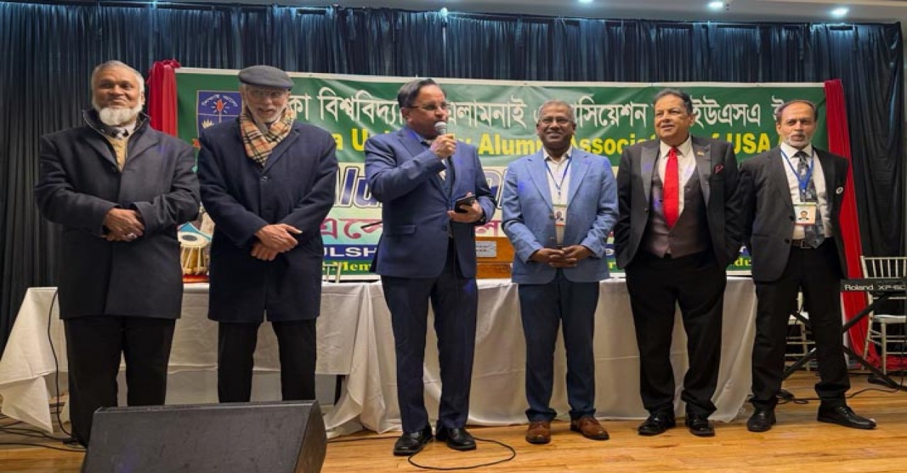 নিউইয়র্ক (ইউএনএ): ‘এসো মিলি প্রাণের টানে’ শ্লোগানে ‘প্রাচ্যের অক্সফোর্ড’ বলে খ্যাত ঢাকা বিশ্ববিদ্যালয়ের প্রাক্তন ছাত্র- ছাত্রীদের সংগঠন ঢাকা বিশ্ববিদ্যালয় এলামনাই এসোসিয়েশন অব ইউএসএ ইনকের বার্ষিক নৈশভোজ অনুষ্ঠিত হল গত ৬ ডিসেম্বর শনিবার। নিউইয়র্ক সিটির উডসাইডের অভিজাত ব্যাংকুয়েট গুলশান ট্যারেস পার্টি হলে আয়োজিত জমজমাট এই নৈশভোজের অনুষ্ঠানমালার মধ্যে ছিলো ঢাবি’র প্রাক্তন ছাত্র-ছাত্রীদের স্মৃতিচারণ, অতিথিদের শুভেচ্ছা বক্তব্য ও সাংস্কৃতিক অনুষ্ঠান। আরো ছিলো বিশ্ববিদ্যালয় জীবনের ব্যক্তিগত স্মৃতিচারণ। অনুষ্ঠানে বিপুল সংখ্যক এলামনাই ও তাদের পরিবারের সদস্যদের উপস্থিতির ফলে নৈশভোজটি তাদের মিলনমেলায় পরিণত হয়। খবর ইউএনএ’র।