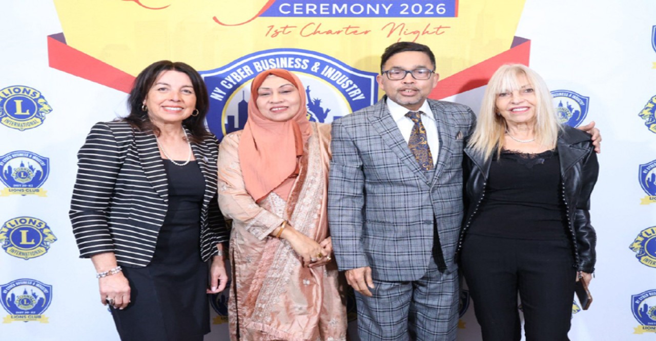 নিউইয়র্ক (ইউএনএ): আন্তর্জাতিক সেবামূলক সংস্থা লায়ন্স ক্লাব ইন্টারন্যাশনালের নিউইয়র্ক ডিস্ট্রিক্ট ২০-আর ২-এর অন্তর্ভুক্ত প্রথম নিউইয়র্ক সাইবার বিজনেস অ্যান্ড ইন্ডাস্ট্রি লায়ন্স ক্লাবের অভিষেক ও চার্টার নাইট-২০২৬ বর্ণাঢ্য আয়োজনে অনুষ্ঠিত হয়েছে। গত ১০ জানুয়ারী শনিবার সন্ধ্যায় অভিজাত নিউইয়র্ক লাগোর্ডিয়া ম্যারিয়ট হোটেলের গ্র্যান্ড বলরুমে অত্যন্ত জাঁকজমকপূর্ণ এই অনুষ্ঠানের আয়েজন করা হয়। এতে মূলধারার রাজনীতিক, কমিউনিটির বিশিষ্ট ব্যক্তিবর্গ, ব্যবসায়ী আর নিউইয়র্ক ডিস্ট্রিক্ট ২০-আর ২ এবং ডিস্ট্রিক্ট কে-২ ও বিভিন্ন ক্লাবের লায়ন্স নেতৃবৃন্দ ও সদস্যদের সরব উপস্থিতিতে অনুষ্ঠানটি উৎসবমুখর হয়ে উঠে। অনুষ্ঠানে বাংলাদেশ সোসাইটি ইনক, নিউইয়র্ক বাংলাদেশি আমেরিকান লায়ন্স ক্লাব, বাংলাদেশ মার্চেন্ট অ্যাসোসিয়েশন, জ্যাকসন হাইটস বিজনেস অ্যাসোসিয়েশন, ইউএস বাংলাদেশ চেম্বার অব কমার্স অ্যান্ড ইন্ডাস্ট্রি’র নেতৃবৃন্দও অংশ নেন। অনুষ্ঠানমালার মধ্যে ছিলো আয়োজক ক্লাবের কর্মকর্তাদের শপথ, শুভেচ্ছা বক্তব্য, অ্যাওয়ার্ড প্রদান, সঙ্গীত প্রভৃতি। খবর ইউএনএ’র।