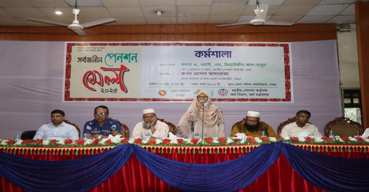 বগুড়ায় সর্বজনীন পেনশন মেলার উদ্বোধন বগুড়ায় দিনব্যাপি সর্বজনীন পেনশন মেলার উদ্বোধন করা হয়েছে। জেলা প্রশাসন বগুড়া ও জাতীয় পেনশন কর্তৃপক্ষ অর্থ বিভাগের আয়োজনে (১৮ জুন বুধবার) বেলা ১২ টার দিকে শহরের শহীদ খোকন পার্কে এ মেলার উদ্বোধন করা হয়। বগুড়া জেলা প্রশাসক হোসনা আফরোজার ( যুগ্ম সচিব ) সভাপতিত্বে মেলার উদ্বোধনী অনুষ্ঠানে প্রধান অতিথি ছিলেন জাতীয় পেনশন কর্তৃপক্ষ ঢাকার সদস্য (প্রশাসন ও অর্থ) এ, ওয়াই, এম, জিয়াউদ্দীন আল-মামুন।