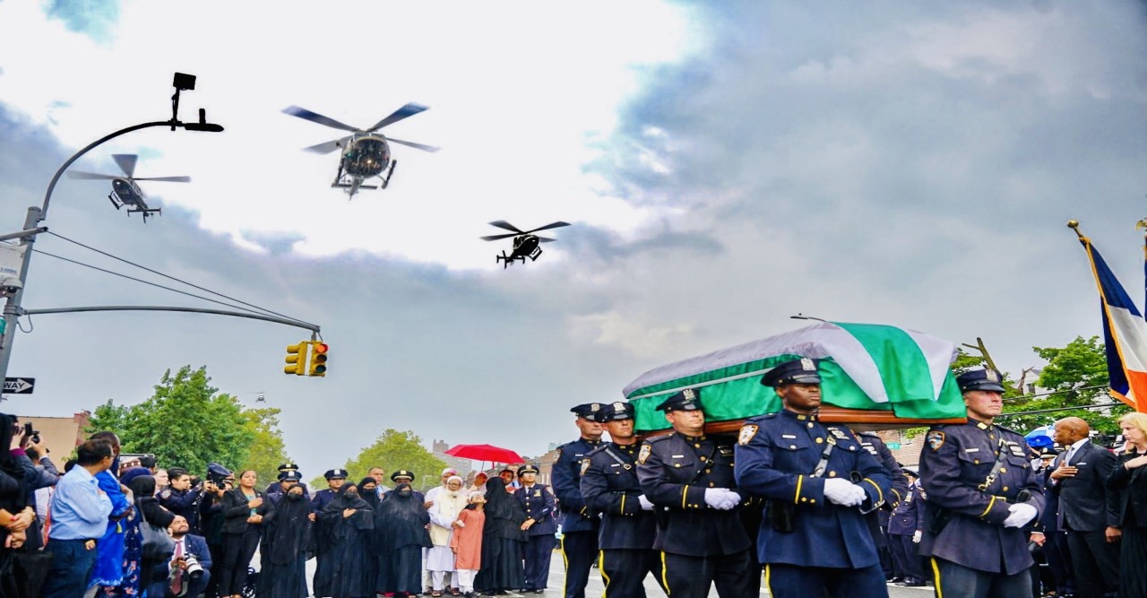 নিউইয়র্ক (ইউএনএ): সর্বস্তরের হাজার হাজার নিউইয়র্কবাসী সহ এনওয়াইপিডির বিপুল সংখ্যক সদস্যের গভীর শ্রদ্ধা-ভালোবাসায় চির বিদায় নিলেন বাংলাদেশী বংশোদ্ভুত পুলিশ অফিসার দিদারুল ইসলাম রতন (৩৬)। বৃহস্পতিবার (৩১ জুলাই) সিটির ব্রঙ্কসের পার্কচেষ্টারে তার জানাজা অনুষ্ঠিত হয়। এরপর তাঁর মরদেহ নিউজার্সী রাজ্যের লোরেল গ্রোভ কবরস্থানে দাফন করা হয়। জানাজা নামাজের আগে নিউইয়র্কের গভর্নরসহ সিটি মেয়র, পুলিশ প্রধান ও সিটির শীর্ষ নেতৃবৃন্দ শ্রদ্ধা নিবেদন করেন সাহসী এই বাংলাদেশী পুলিশ কর্মকর্তাকে। এদিকে দিদারুল ইসলাম রতনের চির বিদায়ে ২০/২৫ হাজারের বেশী মানুষের সাথে কাঁদলো নিউইয়র্কের আকাশ। তার জানাজা নামাজের পর পুলিশ বিভাগের গার্ড অব অনারের মাধ্যমে অফিসার রতনের মরদেহ দাফনের জন্য নেয়ার সময় নিউইয়র্কের আকাশে অঝোরে বৃষ্টি শুরু হয়। এসময় হাজার হাজার পুলিশ অফিসার ও জনসাধারণ যে যার অবস্থানেই দাঁড়িয়ে থেকে বৃষ্টিতে ভিজে তাঁকে শেষ বিদায় জানান। খবর ইউনএ’র।