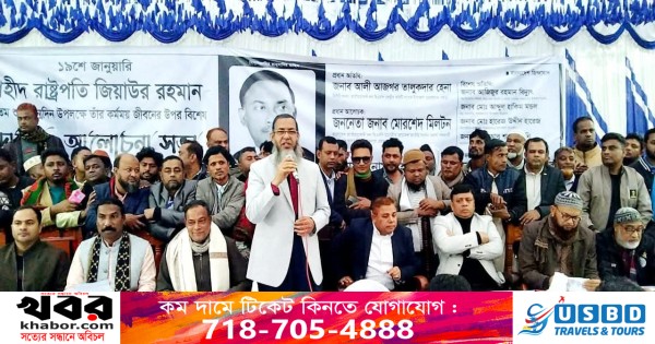 আজ (১৯ জানুয়ারি সোমবার) বিকেলে শহীদ রাষ্ট্রপতি জিয়াউর রহমানের ৯০ তম জন্মদিন উপলক্ষে বগুড়ার শাজাহানপুরের গোহাইল ইউনিয়ন বিএনপি আয়োজনে গোহাইল বন্দরে আলোচনা সভা ও দোয়া মাহফিলে প্রধান অতিথির বক্তব্যে তিনি উপরোক্ত কথাগুলো বলেন। গোহাইল ইউনিয়ন বিএনপির সভাপতি আব্দুল মান্নানের সভাপতিত্বে শহীদ জিয়ার কর্মময় জীবনের উপর প্রধান আলোচক হিসেবে বক্তব্য রাখেন বগুড়া-৭ (শাজাহানপুর-গাবতলী) আসনের সংসদ সদস্য প্রার্থী মোরশেদ মিল্টন। বিশেষ আলোচক হিসেবে বক্তব্য রাখেন শাজাহানপুর উপজেলা বিএনপির সভাপতি এনামুল হক শাহীন, সাধারণ সম্পাদক আজিজুর রহমান বিদ্যুৎ, উপজেলা বিএনপির সাবেক সভাপতি আলী হায়দার তোতা, বগুড়া জেলা ছাত্রদলের সাধারণ সম্পাদক এম আর হাসান পলাশ, শাজাহানপুর উপজেলা বিএনপির সিনিয়র সহ-সভাপতি আব্দুল হাকিম মন্ডল, সাংগঠনিক সম্পাদক হারেজ উদ্দিন, আবু শাহিন সানি। অন্যদের মধ্যে বক্তব্য রাখেন উপজেলা যুবদলের সাবেক আহবায়ক সোহেল আরমান রাজু, সাবেক সিনিয়র যুগ্ম-আহবায়ক জিল্লুর রহমান, উপজেলা স্বেচ্ছাসেবক সভাপতি আজাদুল ইসলাম, সাধারণ সম্পাদক আইয়ুব আলী, ছাত্রদলের সাধারণ সম্পাদক মেহেদী হাসান অভ্র, মহিলা দলের সভানেত্রী কোহিনুর আক্তার, গোহাইল ইউনিয়ন বিএনপির সাধারণ সম্পাদক মাছুদুর রহমান মিঠু, ধানের শীষের চেয়ারম্যান প্রার্থী মিজানুর রহমান মতিন কাজী, মহিলাদল নেত্রী তানিয়া আক্তার জেমিসহ বিএনপি ও অঙ্গ সহযোগী সংগঠনের নেতাকর্মিরা। সমগ্র অনুষ্ঠান পরিচালনা করেন উপজেলা ছাত্রদলের সভাপতি আব্দুল্লাহ আল ছোটন। আলোচনা শেষে শহীদ প্রেসিডেন্ট জিয়াউর রহমানের রুহের মাগফেরাত কামনা করে বিশেষ দোয়া মাহফিল অনুষ্ঠিত হয়।