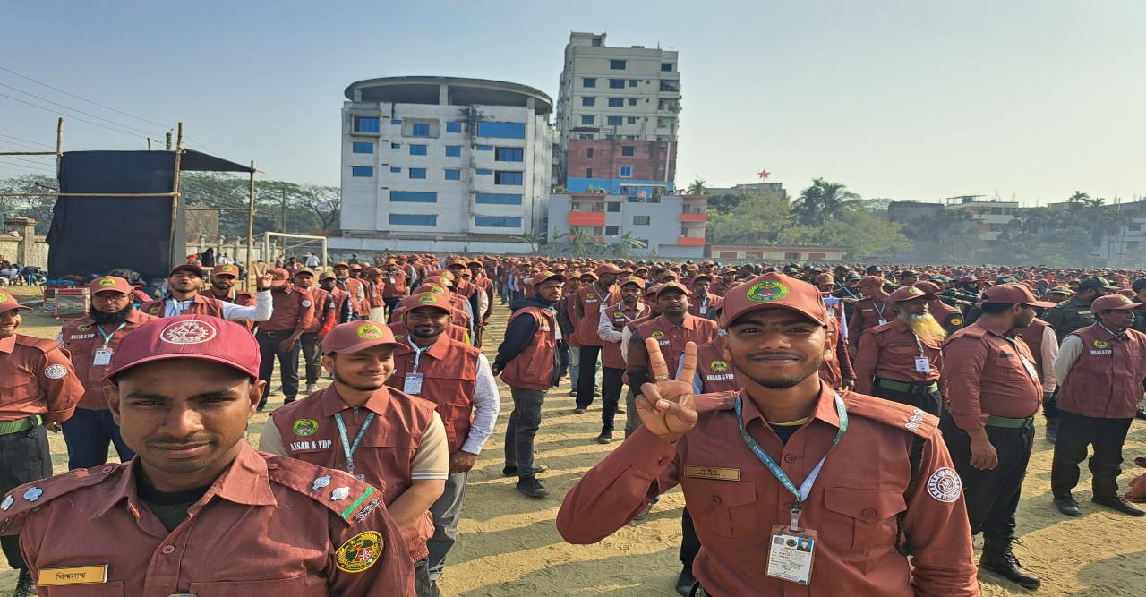 (৬ ফেব্রুয়ারী শুক্রবার) সকাল ১০টায় বগুড়া শহরের খান্দার শহীদ চান্দু স্টেডিয়াম সংলগ্ন ফুটবল মাঠে এই সমাবেশ অনুষ্ঠিত হয়। এ অনুষ্ঠানে প্রধান অতিথি হিসেবে উপস্থিত ছিলেন বাংলাদেশ আনসার ও গ্রাম প্রতিরক্ষা বাহিনী মহাপরিচালক মেজর জেনারেল আব্দুল মোত্তালেব সাজ্জাদ মাহমুদ( এস.জিপি, বি.এ.এম, এন.ডি.ইউ, এফডব্লিউ ভিসি, পিএসসি )। ত্রয়োদশ জাতীয় সংসদ নির্বাচন ও গণভোট-২০২৬ সামনে রেখে একটি অবাধ, সুষ্ঠু ও শান্তিপূর্ণ নির্বাচন নিশ্চিত করতে বাংলাদেশ আনসার ও গ্রাম প্রতিরক্ষা বাহিনী (আনসার ও ভিডিপি) দেশব্যাপী সুসংগঠিত, প্রযুক্তিনির্ভর ও পেশাদার প্রস্তুতিমূলক কার্যক্রম গ্রহণ করেছে। বগুড়ায় সরাসরি উপস্থিতির পাশাপাশি জায়ান্ট স্ক্রিনের মাধ্যমে রংপুর, দিনাজপুর ও নীলফামারী জেলার নির্বাচনী দায়িত্বপ্রাপ্ত আনসার ও ভিডিপি সদস্যরা সমাবেশে যুক্ত হন। সমাবেশে প্রধান অতিথি আনসার ও গ্রাম প্রতিরক্ষা বাহিনীর মহাপরিচালক মেজর জেনারেল আবদুল মোতালেব সাজ্জাদ মাহমুদ তার বক্তব্যে রাষ্ট্রের অর্পিত দায়িত্ব সঠিকভাবে পালনে সকল সদস্যকে দৃঢ় অঙ্গীকারবদ্ধ থাকার আহ্বান জানান।