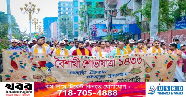 আজ (১৪ এপ্রিল মঙ্গলবার ) পহেলা বৈশাখ-১৪৩৩ বঙ্গাব্দ। বাঙ্গালির প্রাণের উৎসব পহেলা বৈশাখ। বৈশাখী আয়োজনের মাধ্যমে পুরনো বছরকে বিদায় দিয়ে নতুন বছরকে বরণ করে নেওয়া হয়। বর্ষবরণে রাজশাহী জেলা প্রশাসন কর্তৃক আয়োজিত এক বর্ণাঢ্য আনন্দ শোভাযাত্রা শহীদ এ.এইচ.এম কামারুজ্জামান কেন্দ্রীয় উদ্যান ও চিড়িয়াখানার গেট থেকে শুরু হয়ে রাজশাহী শিশু একাডেমিতে গিয়ে শেষ হয়। শুভ নববর্ষ উপলক্ষে শিল্পকলা একাডেমিতে এক সাংস্কৃতিক অনুষ্ঠানের আয়োজন করা হয়।