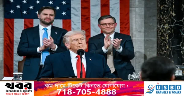২৪ ফেব্রুয়ারি রাতে প্রেসিডেন্ট Donald Trump কংগ্রেসে তাঁর দ্বিতীয় মেয়াদের প্রথম স্টেট অব দ্য ইউনিয়ন ভাষণ প্রদান করেন। প্রায় এক ঘণ্টা ৪৮ মিনিট দীর্ঘ এই ভাষণে তিনি প্রশাসনের অর্জন তুলে ধরে আমেরিকার জন্য একটি ‘গোল্ডেন এজ’ বা স্বর্ণযুগের সূচনা হয়েছে বলে দাবি করেন। তবে ডেমোক্র্যাটদের প্রতিক্রিয়া এবং সাম্প্রতিক জনমত বিশ্লেষণ বলছে—এই ভাষণ ছিল রাজনৈতিকভাবে তীব্র, বিভাজনমুখী এবং তথ্যগত বিতর্কে ঘেরা। অর্থনীতি: গর্জন নাকি উদ্বেগ? প্রেসিডেন্ট ট্রাম্প অর্থনীতিকে “roaring” বা গর্জনশীল হিসেবে আখ্যা দেন। তাঁর বক্তব্য অনুযায়ী, মুদ্রাস্ফীতি নিয়ন্ত্রণে, জ্বালানির দাম কমেছে, এবং শেয়ারবাজার উচ্চতায় অবস্থান করছে। কিন্তু ডেমোক্র্যাটদের প্রতিক্রিয়া ছিল ভিন্ন সুরে। তারা বলছেন, সাধারণ আমেরিকান এখনও জীবনযাত্রার ব্যয় নিয়ে উদ্বিগ্ন। বিভিন্ন জরিপে দেখা গেছে, অর্থনীতি পরিচালনায় প্রশাসনের নীতির প্রতি সমর্থন বিভক্ত।