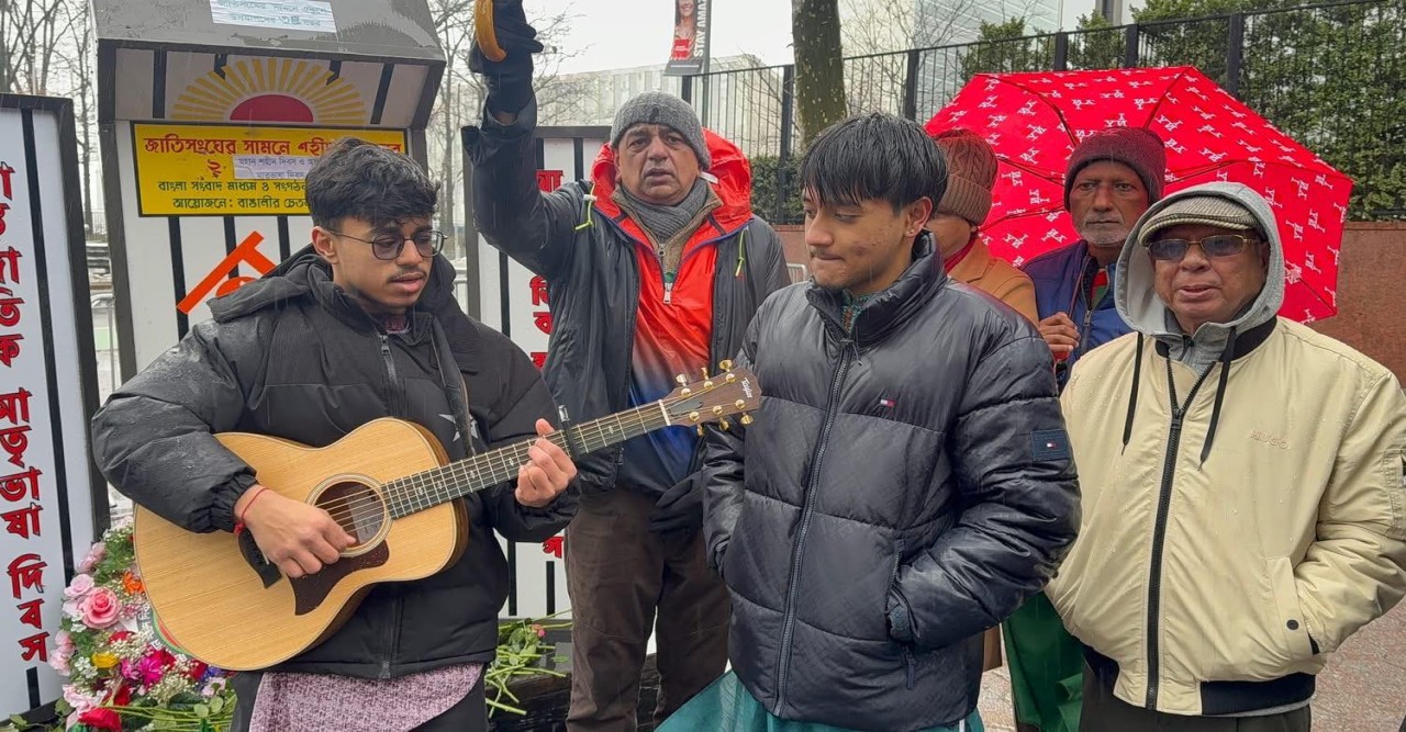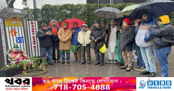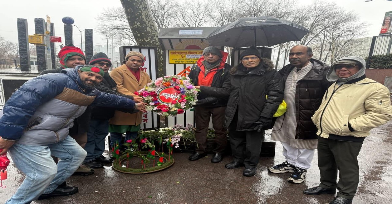 নিউ ইয়র্ক: একটানা দীর্ঘ ৩৫ বছর উপস্থিত সর্বকনিষ্ঠ শিশুর শহীদ বেদীতে পুষ্পার্ঘ্য অর্পণের মাধ্যমে জাতিসংঘের সদর দফতরের সামনে বাংলাদেশ সময়ের সাথে মিলিয়ে নিউ ইয়র্কে একুশ ও আন্তর্জাতিক মাতৃভাষা দিবস উদযাপিত হয়। প্রচন্ড বৃষ্টি ও বিরূপ আবহাওয়ার মধ্যে সম্মিলিত কন্ঠে ভাষা দিবসের গান, কবিতা আবৃত্তি ও আলোচনা অনুষ্ঠানের মধ্য দিয়ে দিবসটি পালিত হয়। মুক্তধারা ফাউন্ডেশনের প্রতিষ্ঠাতা ও প্রধান নির্বাহী বিশ্বজিত সাহার পরিচালনায় অনুষ্ঠিত আলোাচনা অনুষ্ঠানে জাতিসংঘের অবসরপ্রাপ্ত সিনিয়র অর্থনীতিবিদ ও নিউ ইয়র্ক আন্তর্জাতিক বাংলা বইমেলার ২০২৬ সালের আহ্বায়ক ড. নজরুল ইসলাম বক্তব্য রাখেন। তাঁর বক্তব্যে ১৯৯২ সাল থেকে জাতিসংঘের সদর দফতরের সামনে একুশ উদযাপন এবং বইমেলা শুরুর গুরুত¦ আরোপ এবং পরবর্তীতে প্রবাস জীবনে তার প্রভাব বিস্তারের কথা তুলে ধরেন। ভাষা আন্দোলন, একাত্তরের মুক্তিযুদ্ধ এবং বাংলাদেশের স্বাধীনতার বিভিন্ন দিক তুলে ধরেন।