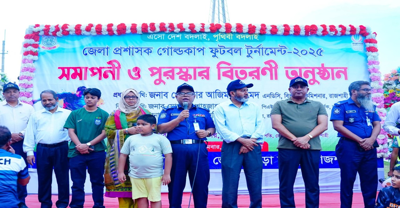 রাজশাহী জেলা প্রশাসক গোল্ডকাপ ফুটবল টুর্নামেন্টে চ্যাম্পিয়ন হয়েছে মোহনপুর উপজেলা ফুটবল দল। পুঠিয়া উপজেলা ফুটবল দলকে টাইব্রেকারে ৫-৪ গোলে ব্যবধানে হারিয়ে চ্যাম্পিয়ন হওয়ার গৌরব অর্জন করে মোহনপুর। নির্ধারিত সময়ের খেলা ১-১ গোলে ড্র হলে টাইব্রেকারে গড়ায় ম্যাচ। (২১ জুলাই সোমবার) রাজশাহী মুক্তিযুদ্ধ স্মৃতি স্টেডিয়ামে আসরের এ ফাইনাল ম্যাচটি অনুষ্ঠিত হয়। ম্যাচের শুরুতে উভয় দলের আক্রমণ পাল্টা আক্রমণ চলে খেলা। ম্যাচের ১৫ তম মিনিটে ইসমাইল চমৎকার হেডে মোহনপুর উপজেলা ফুটবল দলকে ১-০ গোলে এগিয়ে নেন। পিছিয়ে পড়ে গোল পরিশোধে মরিয়া হয়ে উঠলেও সুযোগ কাজে লাগাতে পারেনি পুঠিয়া উপজেলা ফুটবল দল।