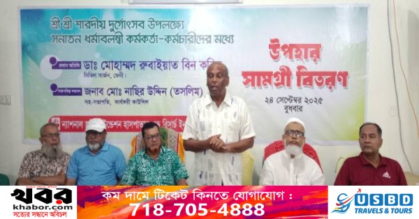 সনাতন হিন্দু ধর্মালম্বী কর্মকর্তা কর্মচারীদের মাঝে ফেনী ন্যাশনাল হার্ট ফাউন্ডেশনের উপহার সামগ্রী বিতরন