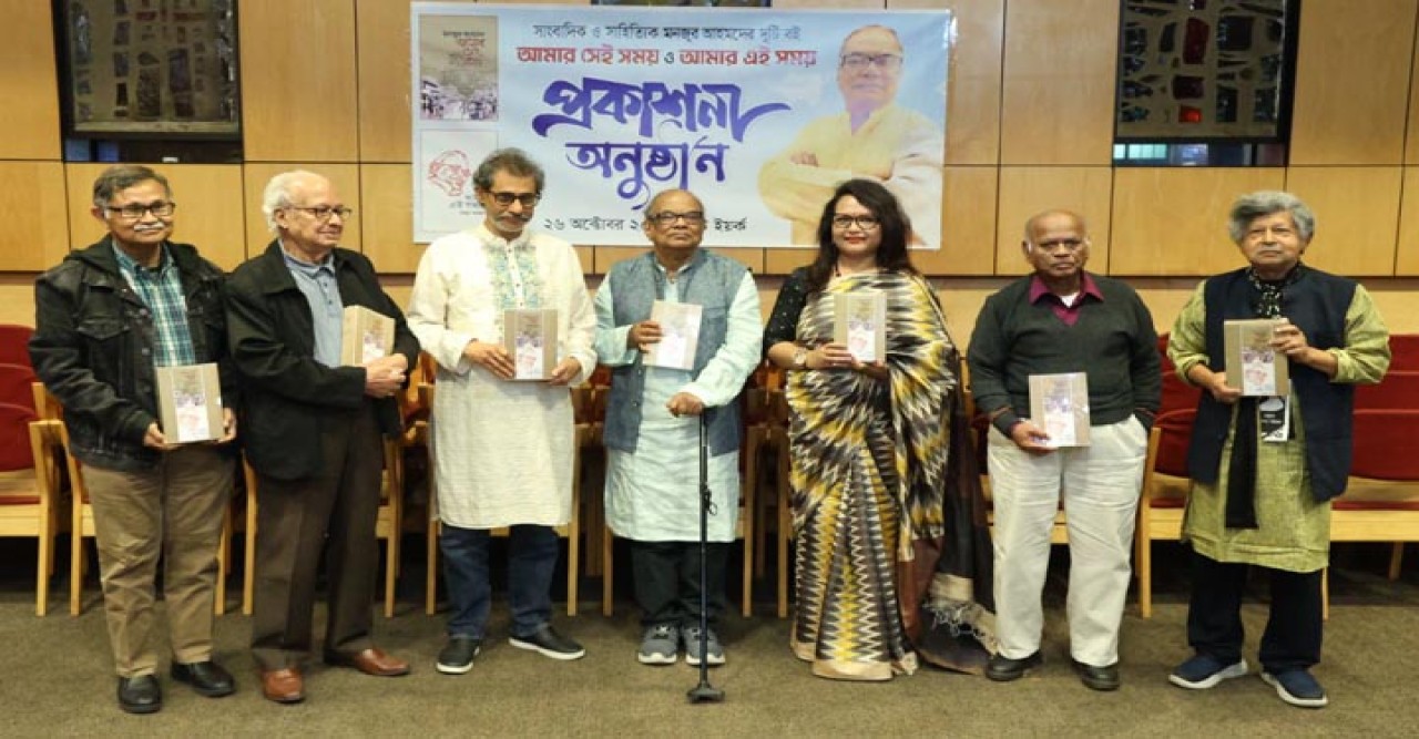 নিউইয়র্ক (ইউএনএ): নিউইয়র্ক প্রবাসী বর্ষীয়ান সাংবাদিক ও সাহিত্যিক মনজুর আহমদের লেখা দুটি বই ‘আমার সেই সময় এবং আমার এই সময়’-এর প্রকাশনা উৎসব ও মুক্ত আলোচনা অনুষ্ঠিত হয়েছে। রোববার (২৬ অক্টোবর) সন্ধ্যায় জ্যাকসন হাইটসের জুইশ সেন্টারে আয়োজিত এ অনুষ্ঠানে লেখকের শুভাকাংখি ভক্তরা উপস্থিত হয়ে বই দু’টির বিভিন্ন দিক নিয়ে আলোচনা এবং সর্বাঙ্গিন সাফল্য কামনা করেন। খবর ইউএনএ’র।