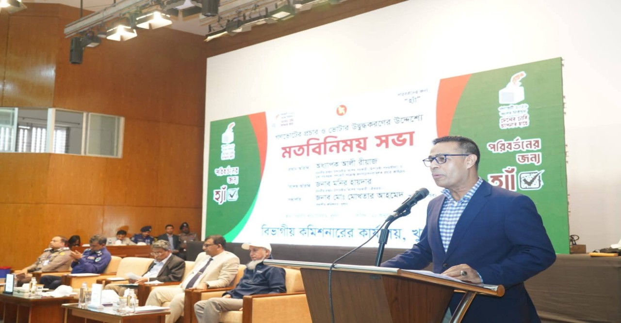 আসন্ন গণভোটে ‘হ্যাঁ’-এ সিল দিলে নতুন বাংলাদেশ গড়ার দরজা খুলে যাবে বলে মন্তব্য করেছেন প্রধান উপদেষ্টার বিশেষ সহকারী অধ্যাপক আলী রীয়াজ। তিনি বলেন, অনেকেই জানতে চান- ‘হ্যাঁ’ এর প্রার্থী কে? আমি বলি- ‘হ্যাঁ’ এর প্রার্থী আপনি, আমি, আমরা সবাই। কারণ ‘হ্যাঁ’ আমাদের উপহার দেবে একটি গণতান্ত্রিক-মানবিক বাংলাদেশ। যেটি জুলাই গণঅভ্যুত্থানের আকাঙ্ক্ষা। ‘হ্যাঁ-তে আপনি সিল দিন, আপনার পরিচিত সবাইকে সিল দিতে উদ্বুদ্ধ করুন এবং তাদেরকে ভোট কেন্দ্রে নিয়ে আসুন। দেশ পাল্টে দিন’, যোগ করেন প্রধান উপদেষ্টার এই বিশেষ সহকারী। (২২ জানুয়ারি বৃহস্পতিবার ) সকালে খুলনা বিভাগীয় অডিটোরিয়ামে আসন্ন গণভোট ও ভোটার উদ্বুদ্ধকরণে আয়োজিত মতবিনিময় সভায় প্রধান অতিথির বক্তব্যে এসব কথা বলেন তিনি। খুলনা বিভাগীয় কমিশনার মো. মোখতার আহমেদ সভায় সভাপতিত্ব করেন।